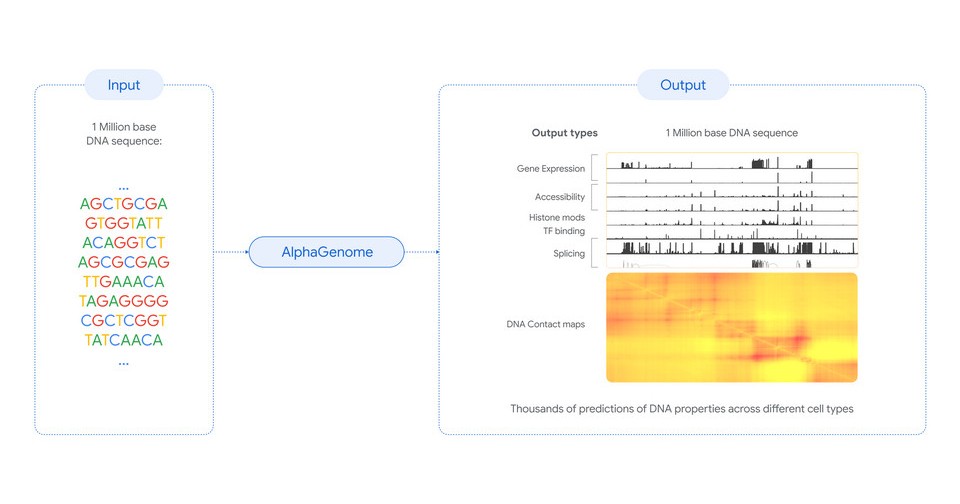 Вице-президент по исследованиям Google DeepMind Пушмит Кохли (Pushmeet Kohli) с коллегами разработал модель на основе машинного обучения AlphaGenome, которая может анализировать с разрешением до пары оснований последовательности до миллиона пар, включая некодирующие последовательности, и предсказывать множество молекулярных характеристик, включая начала и окончания генов, места сплайсинга, количество производимой на их матрице РНК, доступность, связь с белками и другие. Для обучения модели использовали данные геномов человека и мыши из крупных публичных консорциумов ENCODE, GTEx, 4D Nucleome и FANTOM5. Она основана на предыдущей модели Google DeepMind для анализа генома Enformer и дополняет модель для анализа вариантов в кодирующих последовательностях AlphaMissense. Оптимизация технологий разработки позволила повысить эффективность без значительных затрат аппаратных ресурсов: обучение одиночной модели AlphaGenome (без дистилляции данных) заняло четыре часа и потребовало вдвое меньше вычислительных ресурсов, чем обучение Enformer.